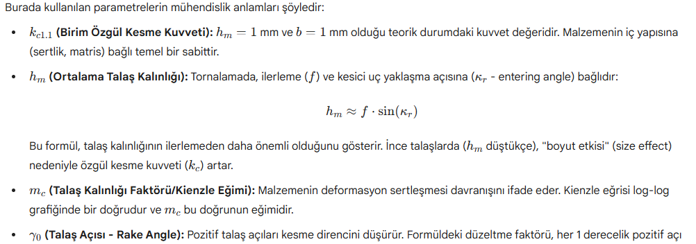 3. Mühendislik Hesaplamaları: Kesme Kuvvetleri ve Güç Modelleri