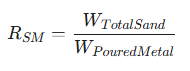 - W{TotalSand}: Derece (flask) hacminden, metalin ve varsa maçaların (cores) hacminin çıkarılmasıyla kalan net yeşil kum ağırlığıdır.