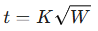 Pik döküm için ampirik formül (W: Döküm ağırlığı kg, t: saniye):
